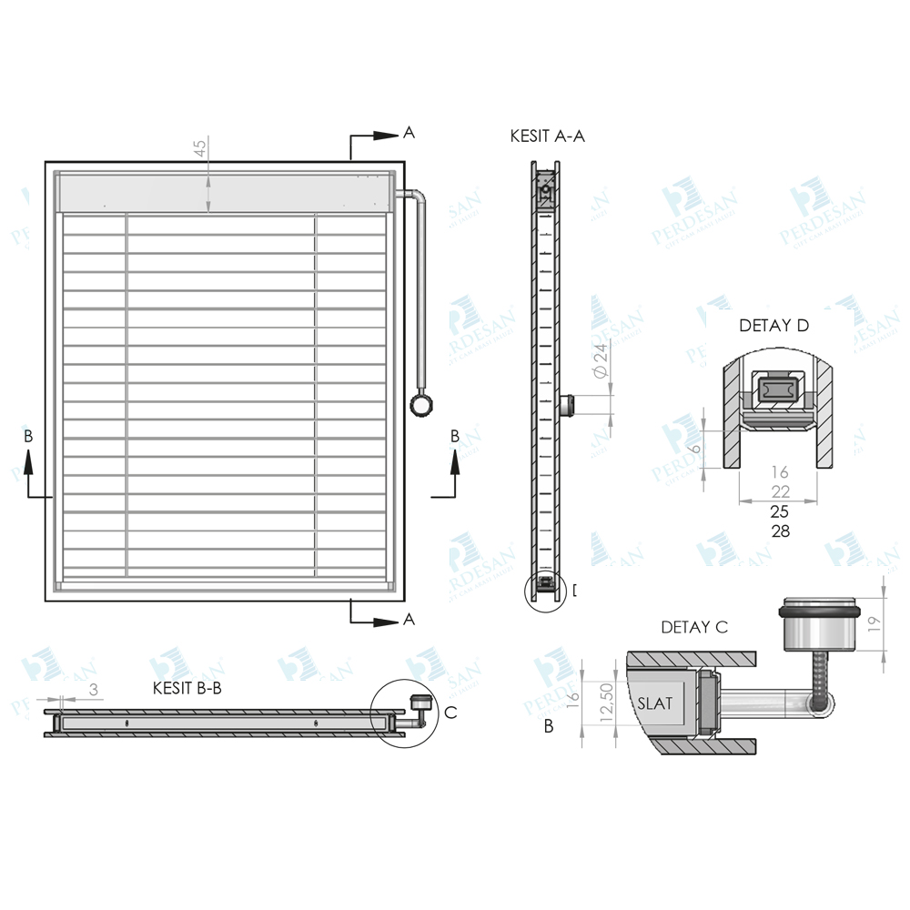 Perdesan Jaluzi® PRD-B-4522; 16-18-20-22-25-28-30 mm hava boşluklu sadece eğim özelliğine