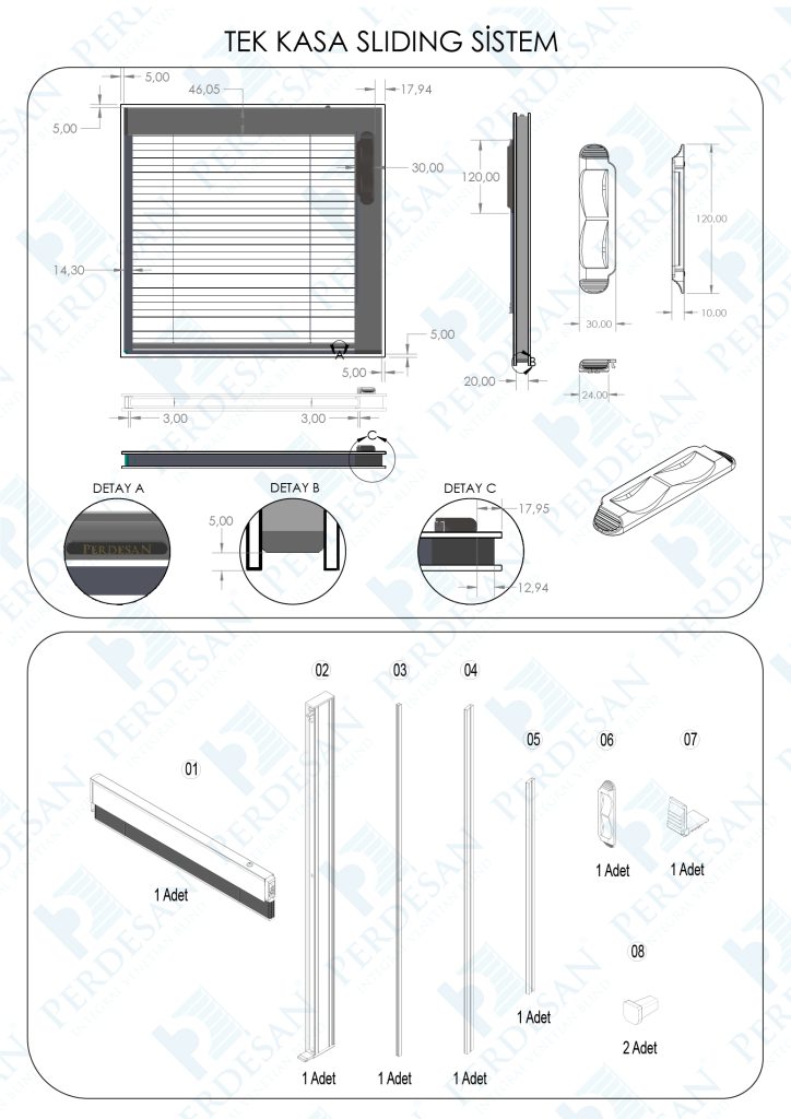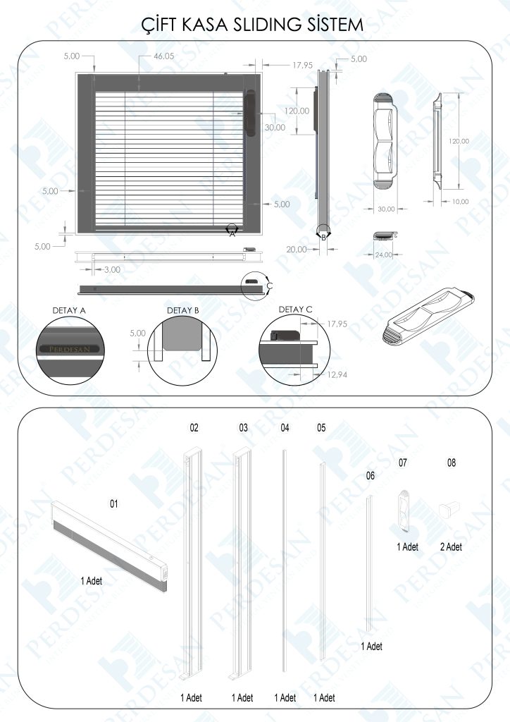 Perdesan PRD-SL-9020 mm hava boşluklu çift cam ünitelerinin arasına yerleştirilen ve manuel mekanizma ile çalışan bir sistemdir. Hem toplama hem eksenel hareket işlevlerine sahiptir.